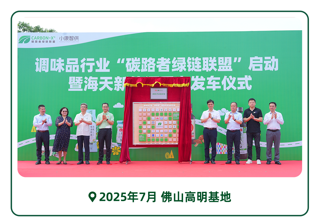 但我们深知,真正的绿色转型,无法独行,“众人拾柴火焰高”,所以我们联动上下游25家合作伙伴,成立了调味品行业首个全产业链减碳联盟——“碳路者绿链联盟”(点击此处查看更多),从源头开始一起绿动,优化每个环节的碳足迹。