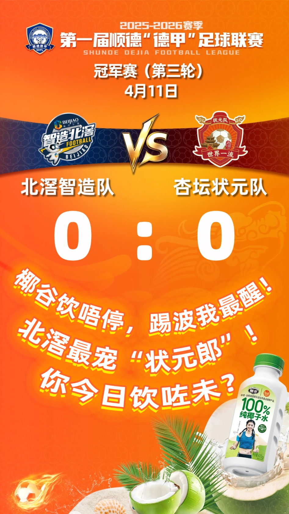 比赛中,北滘队全线压上、攻势如潮,牢牢掌控场上主动权,持续对杏坛队球门形成围攻之势,多次制造极具威胁的进攻机会,可惜均未能改写比分。最终经过全场激战,比分定格为0:0,两队以一场势均力敌的较量握手言和,用拼搏与专注诠释了对足球的纯粹热爱。