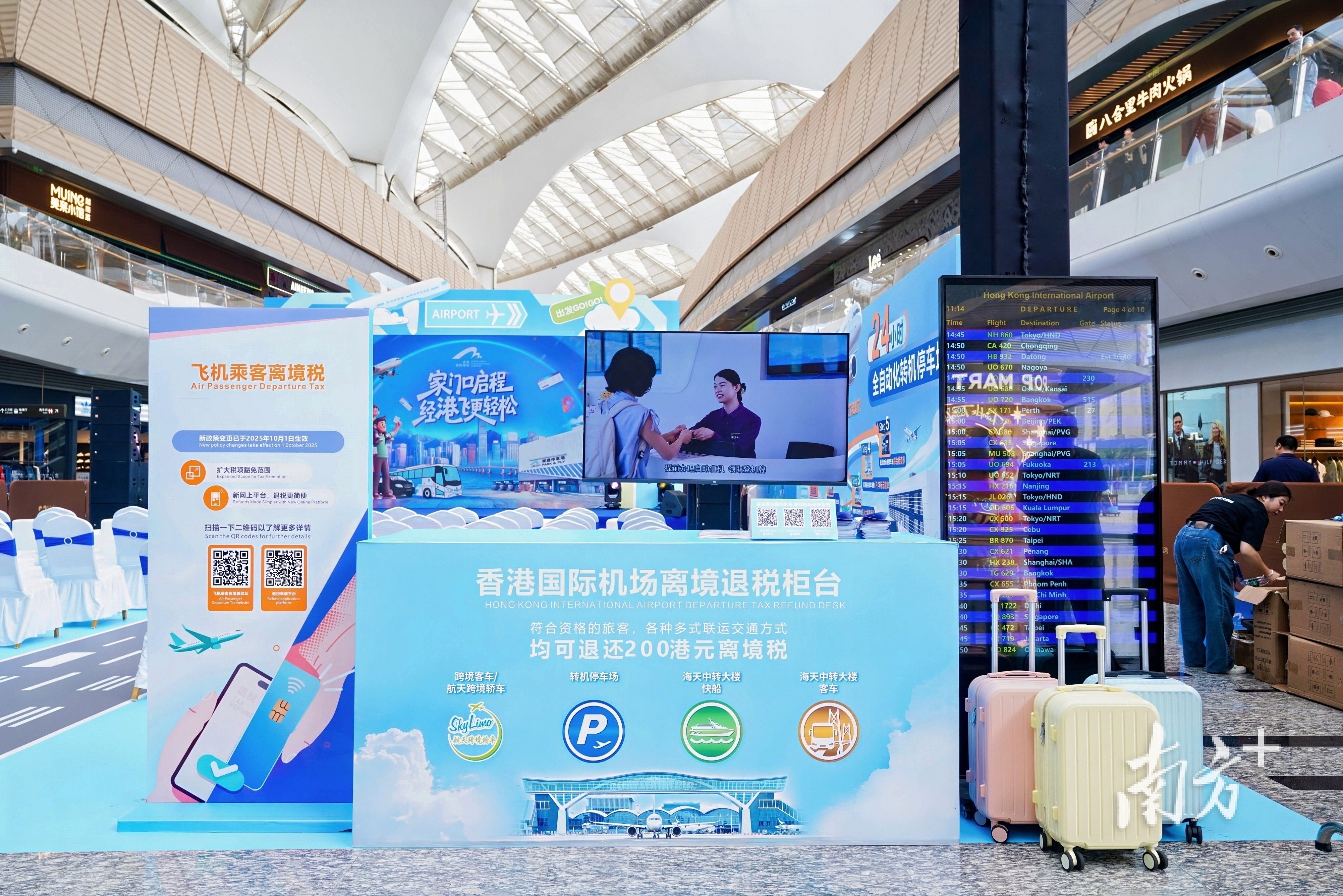 香港国际机场持续优化多式联运服务,在深圳皇岗口岸试行行李托运服务,旅客可在口岸完成登机牌及行李条办理,并将行李直挂至最终目的地,减少机场办理时间。