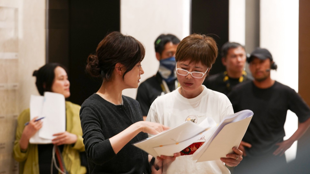 《危险关系》拍摄现场,薛晓路(右)和孙俪(左)讨论。(受访者供图)