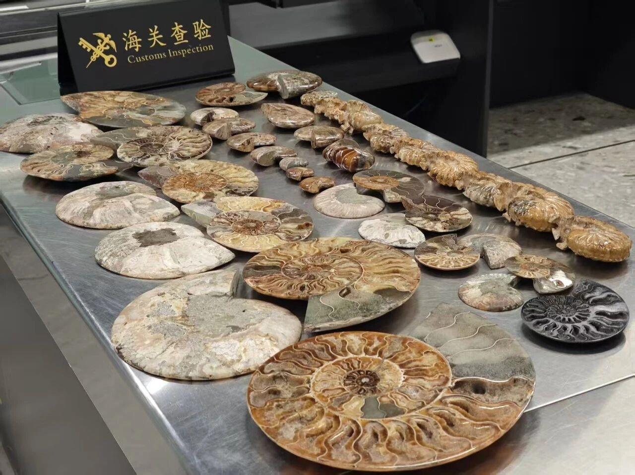 后经广东省自然资源厅鉴定,当事人携带的贝壳形状物品为菊石化石40件、鹦鹉螺化石2件,均属一般保护古生物化石。