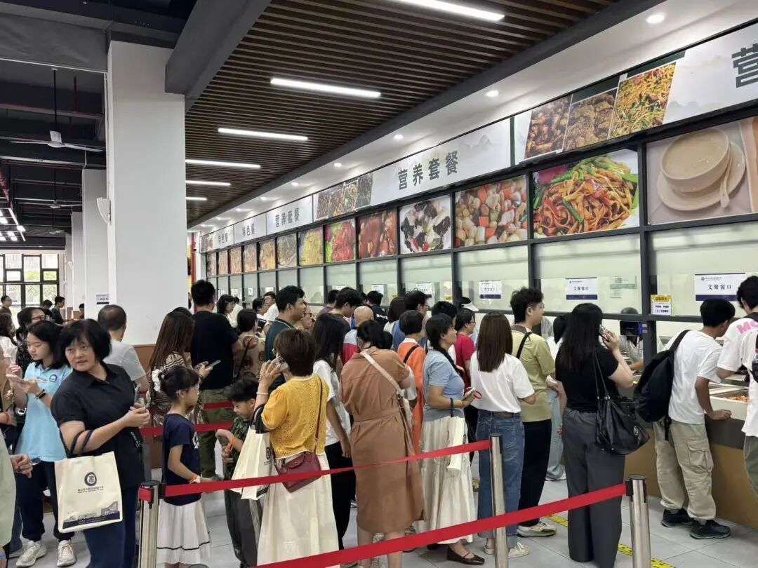 中午时分,学生和家长们走进饭堂,免费品尝了学校准备的自助午餐。
