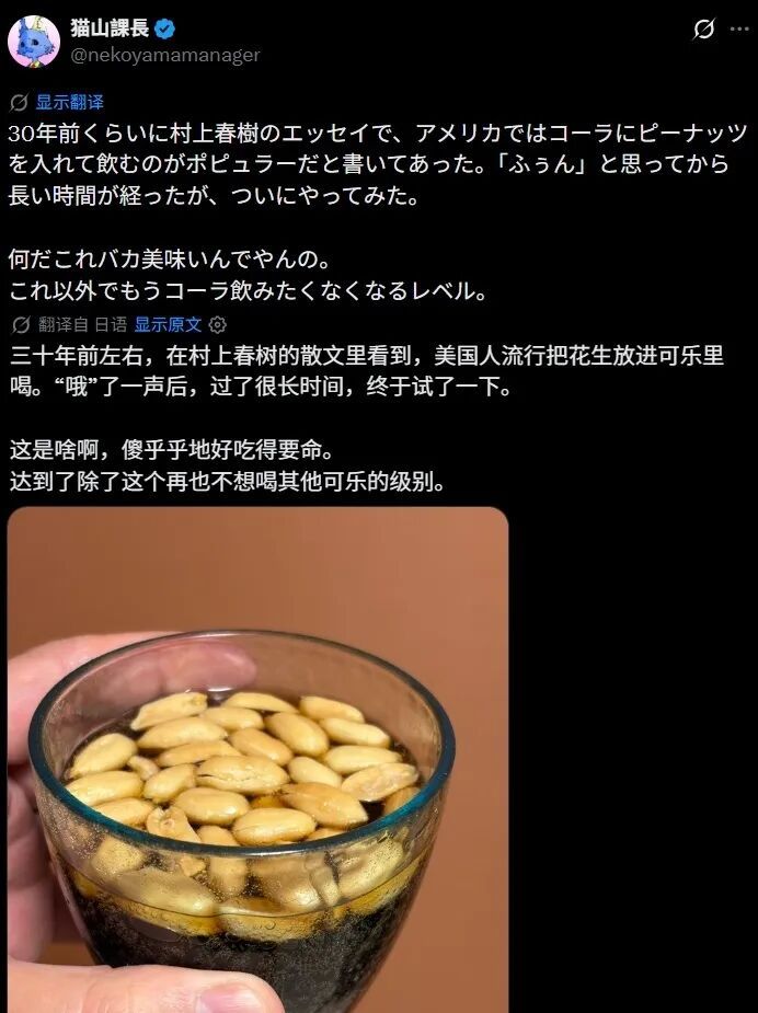 互联网上那些“吃商极高”的人们又开始整新活了,这一次的奇特搭配是花生加可乐。 一位日本网友晒出自己在可乐杯里洒满烤花生的照片,声称这是一种“美国流行吃法”。他盛赞这种搭配美味到不行,达到了“从此再也不想喝其他可乐”的程度。 乍一看还以为腊八蒜入侵饮料界了 | 猫山課長/X 这条帖子在X上获得了超过2千万次浏览,它很快引来了世界各地的模仿者,但人们对花生可乐的评价褒贬不一。有人喜欢花生可乐的味道,称赞它是“完美的甜咸组合”。也有人并不买账,表示二者叠加没有加分,又是被互联网欺骗的一天。 这种雷霆吃法到底源自何方,它真的有什么特别之处吗? 花生可乐并不是为了好吃 花生可乐也被称为“农夫可乐”(farmer's Coke),它确实是一种美国传统吃法。不过,它只存在于美国南部的一些地区,并没有在全美大范围流行过。 据说,这种吃法至少在上世纪20年代就已经出现了。最经典的“花生可乐”做法是把咸味烤花生倒进玻璃瓶装可乐里一起食用——在当时的美国,二者都是乡村杂货店和加油站里常见的零食。 咸味烤花生配玻璃瓶可乐,花生可乐最经典的配方 | delicious.com.au 有人认为,这种吃法源于工作中不方便洗手的人群,比如农夫和汽车修理工人。对他们而言,把花生倒进瓶子吃更能保证卫生。也有人认为,这种吃法的优势在于可以用一只手同时拿两种食物,这对驾驶汽车的司机会很方便[1]。 总之,这其实是一种为便利而生的吃法,它在味道方面并没有什么特殊考量。 甜咸配的魅力 把花生在可乐里泡一小会儿大概率不会带来非常神奇的变化,但它确实落入了一种相当受欢迎的食物搭配模式:甜咸配。 交替吃甜味和咸味食物可以避免厌倦,让人陷入“甜咸永动机”的状态。而海盐焦糖、咸奶盖饮料之类直接把甜咸混在一起的吃法也受到了广泛的好评。 海盐焦糖是甜咸味食物的代表之一 | 图虫创意 把糖和盐混在一起确实可以改善味觉体验,这一点在烹饪和食品工业中有很多应用,而且也得到了科学研究的证实。 加点盐能让糖变得更甜。动物实验显示,这应该是因为钠离子可以促进钠-葡萄糖协同转运蛋白1(SGLT1)的作用[2]。在普通的味觉受体之外,这种转运糖类的蛋白质也可以在味蕾细胞中发挥作用。除此之外,有研究发现氯离子也可以与甜味受体结合,它可能也会带来一点额外的甜味[3]。 除了直接加强甜味,盐还具有一定抑制苦味感知的作用[4]。苦味通常是不愉快的,减弱它也会让人感觉食物味道变好。 在葡萄柚上撒盐也是一种常见的美国吃法。在这里,盐可以同时起到加强甜味和削弱苦味的作用。| 图虫创意 小心喷发 除了被花生呛到,尝试花生可乐时还要一件事需要警惕:倒入花生有可能会让可乐突然喷发。 咸味花生的表面可能会附着固体食盐颗粒,自身也可能具有凹凸不平的表面结构。这些结构都会起到促进气泡形成的作用,让汽水中二氧化碳气泡的逸出速度突然加快——虽然效果没那么强,但这就和在可乐里加曼妥思糖原理完全相同。 加花生时,可乐会更快冒出气泡 | freddsters 如果不想吃得太狼狈,最好不要一次倒进太多花生,并且稍微等待一会儿再开始品尝。 至于这东西到底好不好吃,你恐怕只有亲自尝过才能知道了。 参考文献 [1]https://web.archive.org/web/20130808041658/https://www.coca-colacompany.com/stories/coke-and-peanuts-a-food-historian-speculates-on-how-it-got-started [2] https://pmc.ncbi.nlm.nih.gov/articles/PMC8136586/ [3] https://elifesciences.org/articles/84291 [4] https://pmc.ncbi.nlm.nih.gov/articles/PMC11082923/ 作者:窗敲雨 编辑:Luna 封面图来源:delicious.com.au 本文来自果壳,未经授权不得转载.