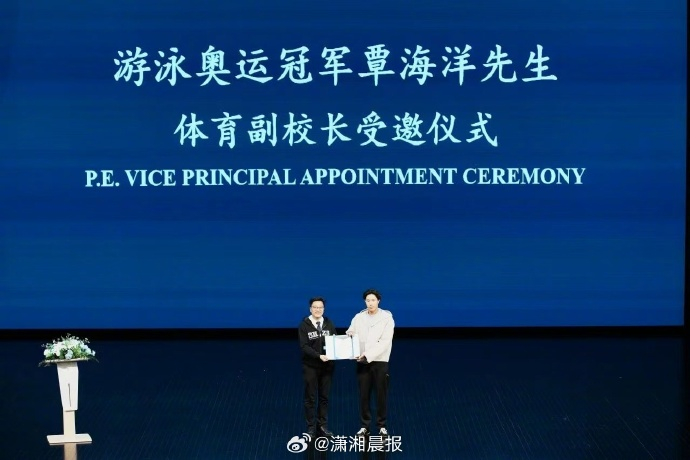 近日,上海圣华紫竹双语学校发文称,国家游泳队运动员、奥运冠军覃海洋-正式受邀担任校荣誉体育副校长。正值体育中考前夕,覃海洋也来到圣华学子中间,为即将出征考场的孩子们加油鼓劲。