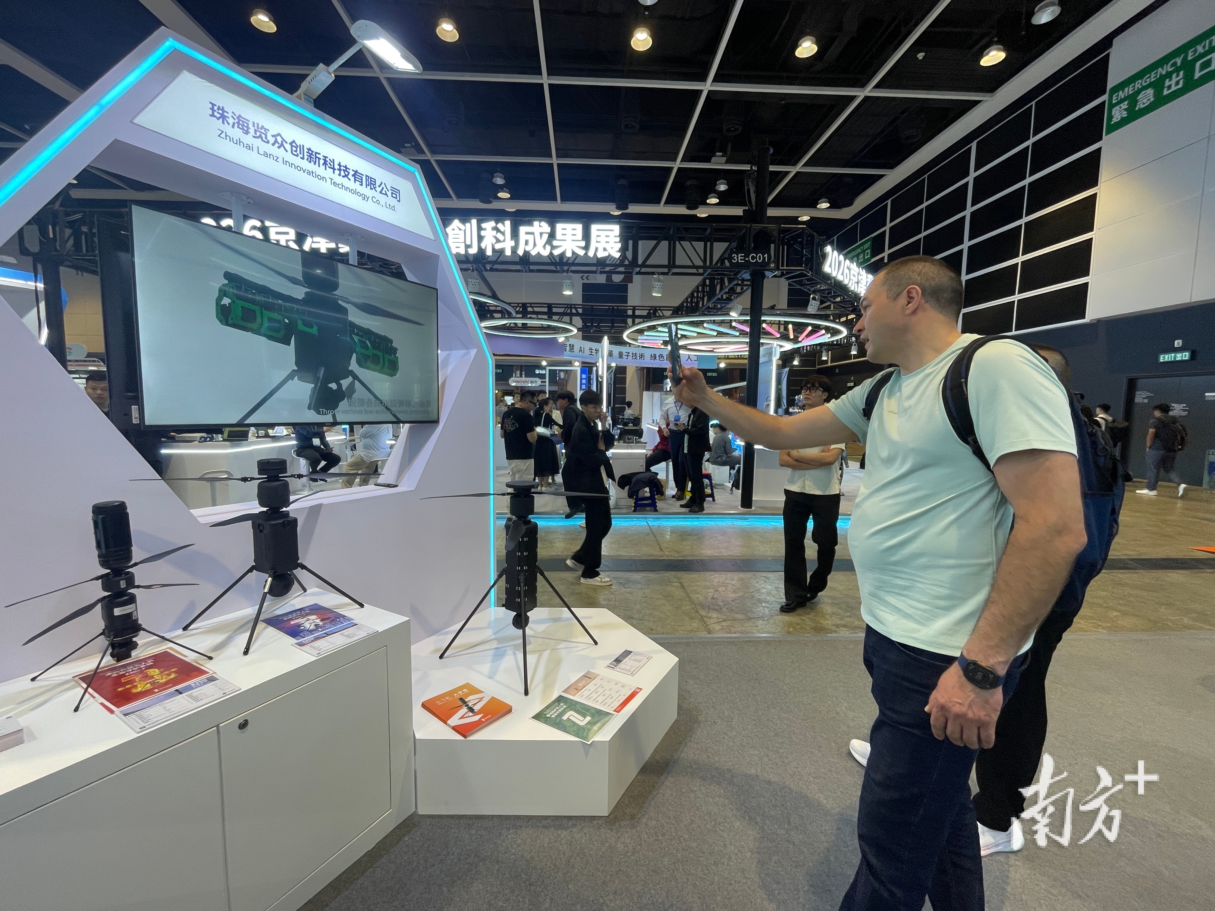 “刚刚开展,一位外国客人就说想体验一下我们的产品,连连挣扎都没有挣脱出我们的电磁网。”在InnoEX广东展团的入口位置,杰创智能产品总监郑兆凯笑着向记者描述了一位外国客户体验他们新品双发版电磁网捕器时的有趣场景。这家主攻人工智能产品的企业首次参加InnoEX,凭借自己的“硬科技”实力,仅仅一上午已吸引了不少来自欧美的客户咨询产品。据该公司海外事业部负责人曾媛媛介绍,公司去年开始坚定产品出海战略,这次来港参展,正是看中创科展的国际化平台。