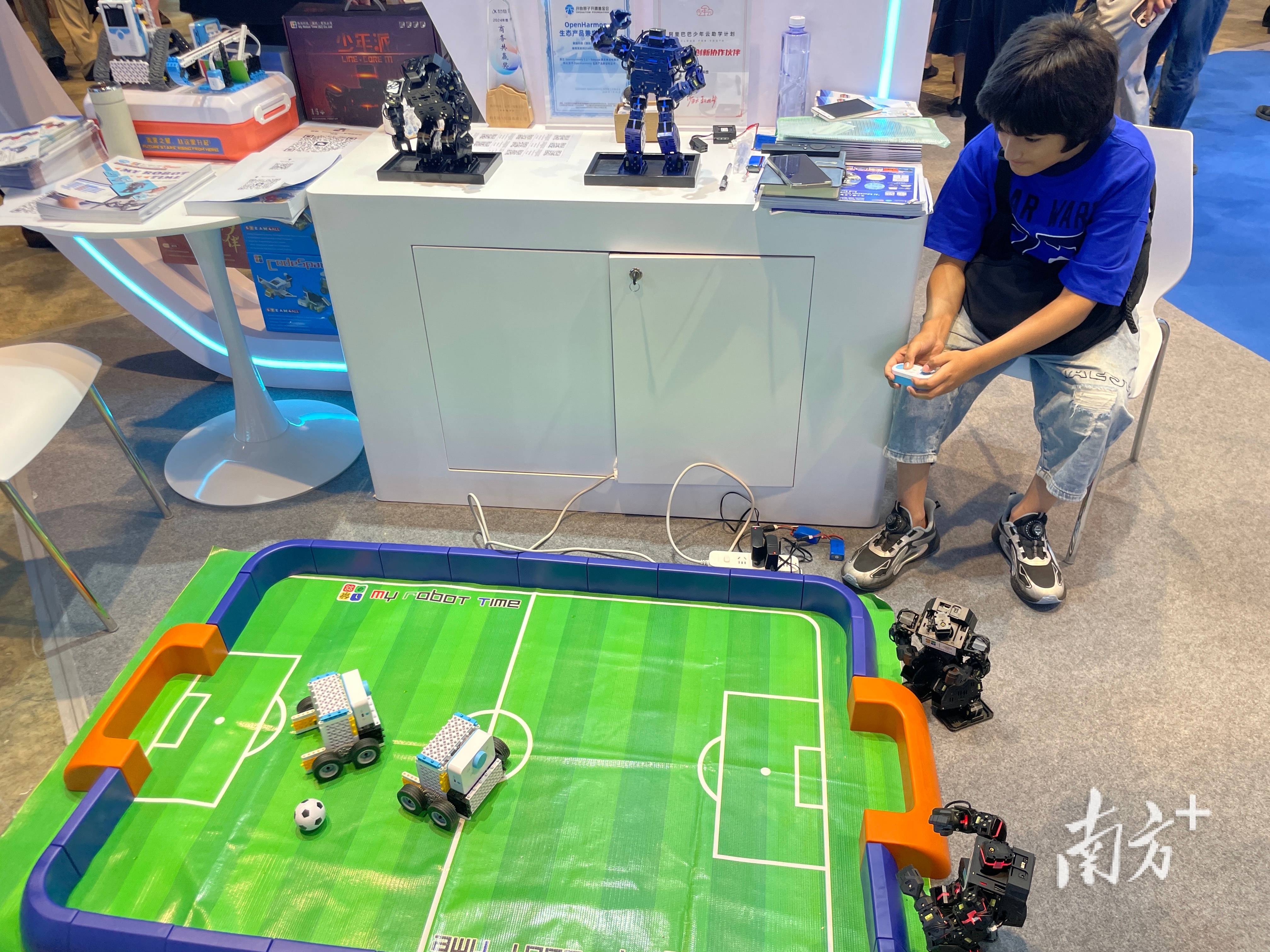 “参展效果很好!”韩端科技(深圳)有限公司海外销售经理康玉香说。这家公司的教育机器人在展会上受到认可,来自印度、美国、菲律宾等地的客户纷纷前来聊需求。一位印度客户的孩子对展出的足球机器人爱不释手,这位做玩具零售的买家当场表示:“这个产品在我的店里一定好卖。”康玉香说,公司以To B业务为主,海外市场主要在东南亚。这次参展,主要是希望碰到更多地区的客户。她对首日的情况很满意,“下一届还来”。