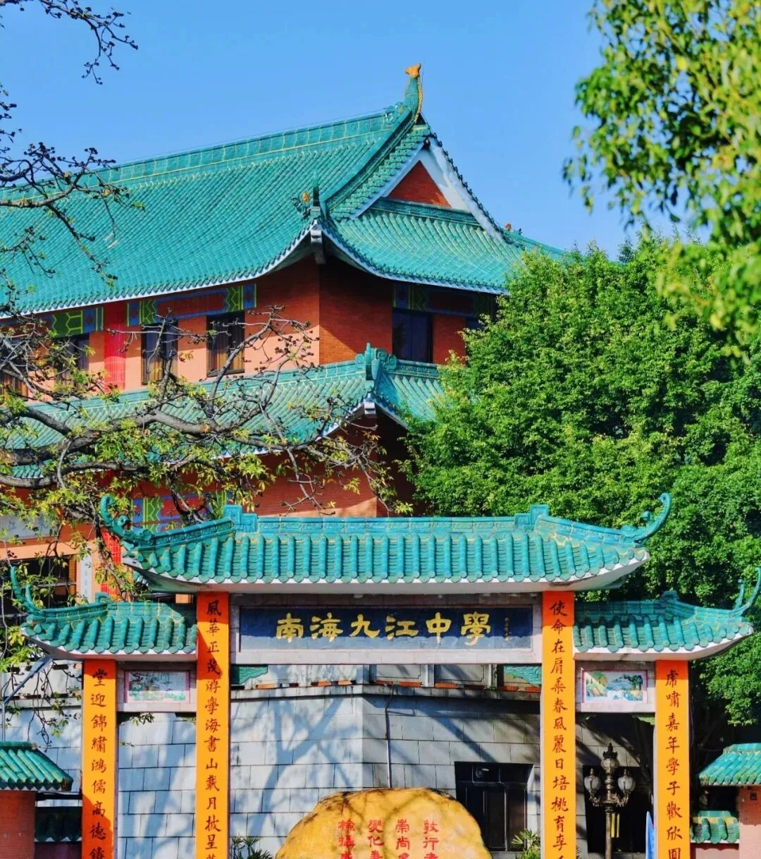 九江中学是为纪念康有为的恩师朱次琦先生而兴建,有着近百年的办学历史。学校自1932年创办以来,一直是佛山地区学子云集、精英荟萃的求学之地,在海内外享有良好声誉。