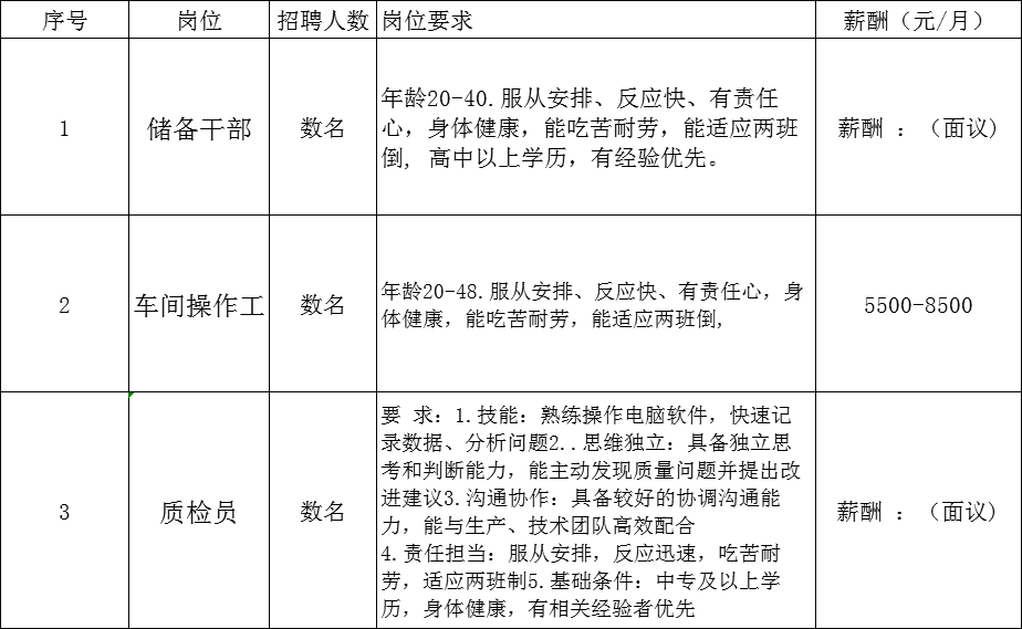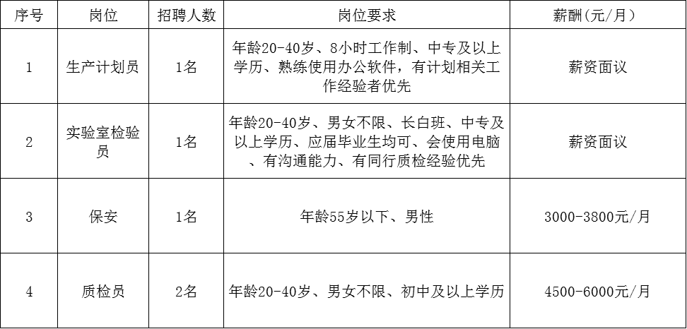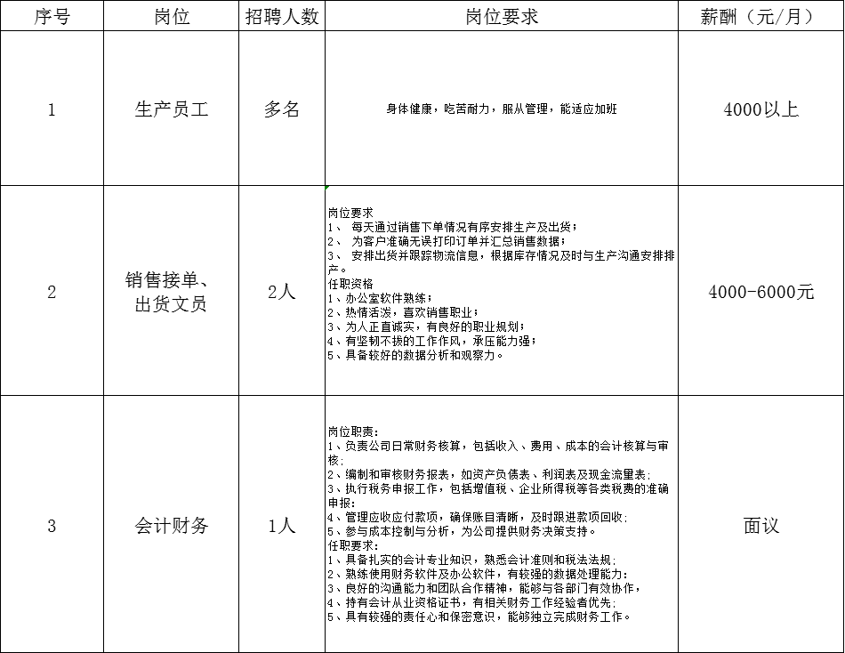 1、长白班工作、每月4天休息、每月15号按时发放工资;
