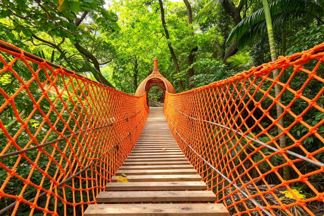 雾森效果:每隔数十米安装高压雾化喷头,定时喷出细腻的水雾,弥漫在古树、索桥、魔网和溪流之间。阳光穿过雾层,会形成丁达尔效应,光线如金丝般洒落,仙气飘飘。