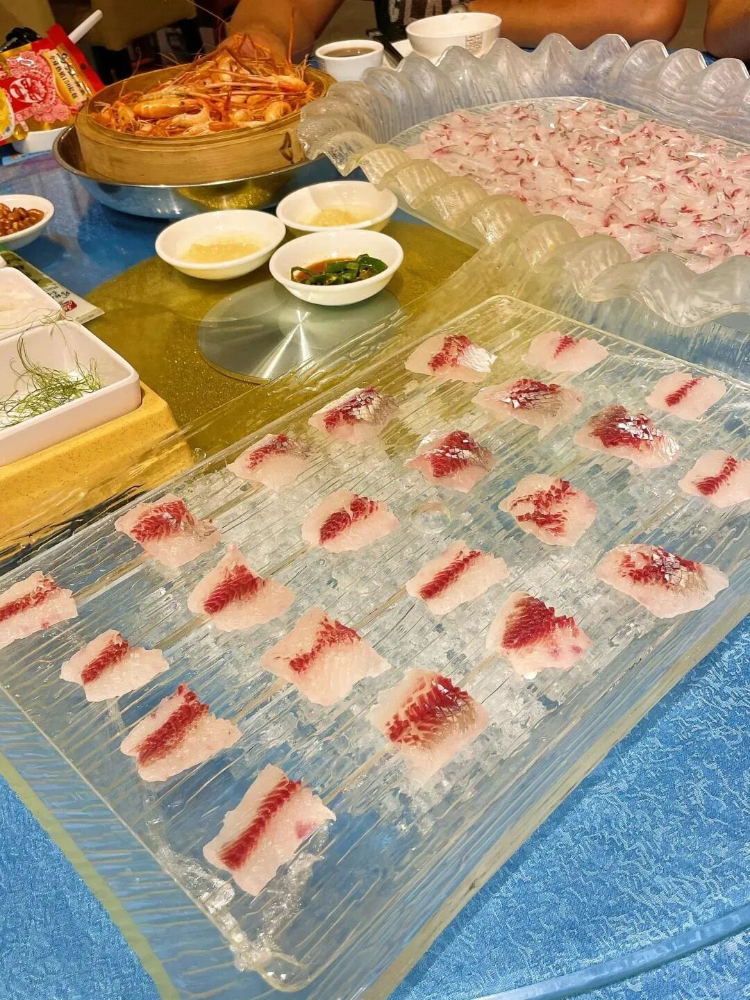 招牌黄脚立鱼生薄如蝉翼,搭配十几种佐料鲜爽入味,必点笼仔蒸西江海虾、蒸黄沙蚬、海鲈一鱼两吃、柴火黄鳝饭,原汁原味、鲜甜弹牙,鲜味与镬气双在线。