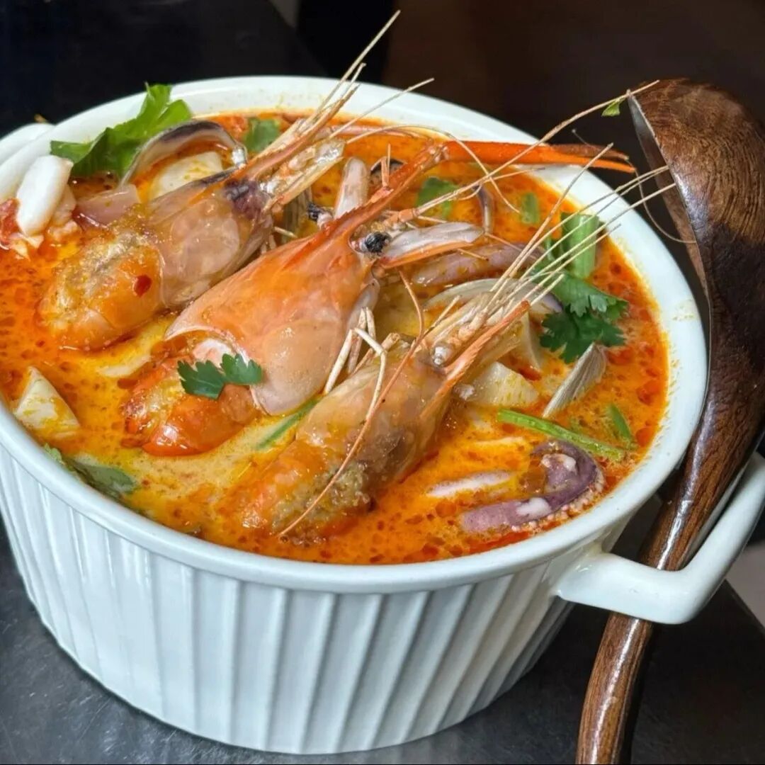 古村落里的复古红砖小屋,一砖一瓦似乎都有自己的故事,菜品极具泰国特色,强烈推荐冬阴功酱炒花螺、冬阴功汤、奶香咖喱蟹、泰式炒罗氏虾,每一口都让你仿佛跻身泰国,室外还有一个小花园,喜欢拍照的朋友们不要错过了,赶紧来出大片吧!