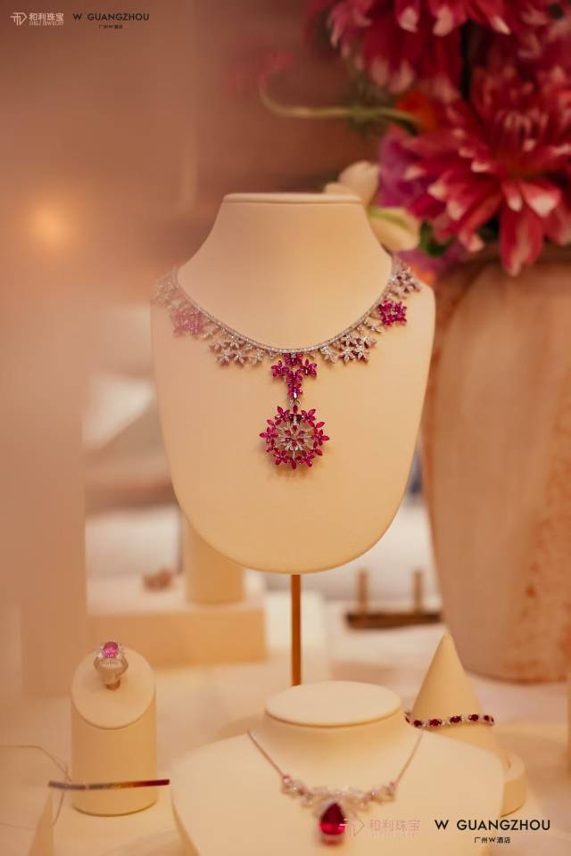 活动现场,宾客们品鉴了多件和利珠宝带来的高级彩色宝石作品,从浓郁的红宝石到深邃的蓝宝石,再到灵动的祖母绿与帕帕拉恰,每一件都展现了彩色宝石的极致魅力。搭配W酒店精心定制的主题下午茶,珠宝的璀璨与甜点的精致相得益彰,营造出视觉与味觉的双重享受。