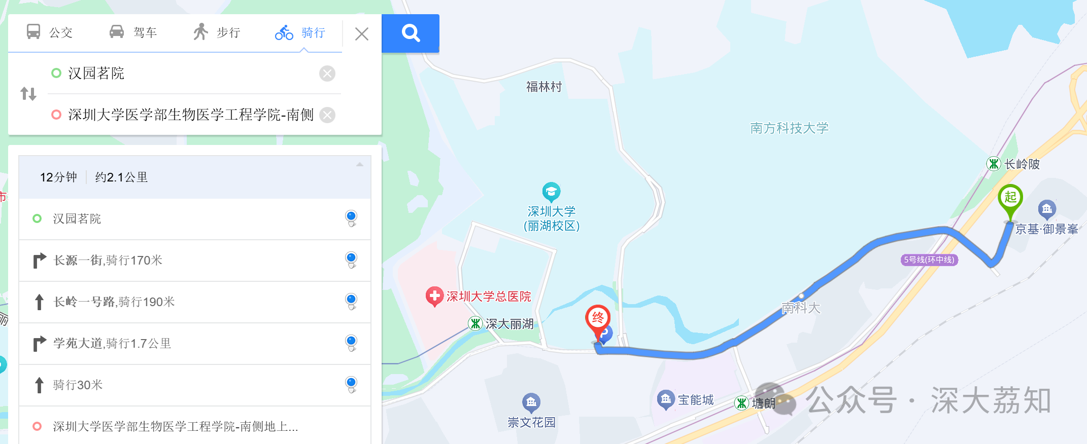 深圳大学丽湖校区到汉园茗院大约2公里。