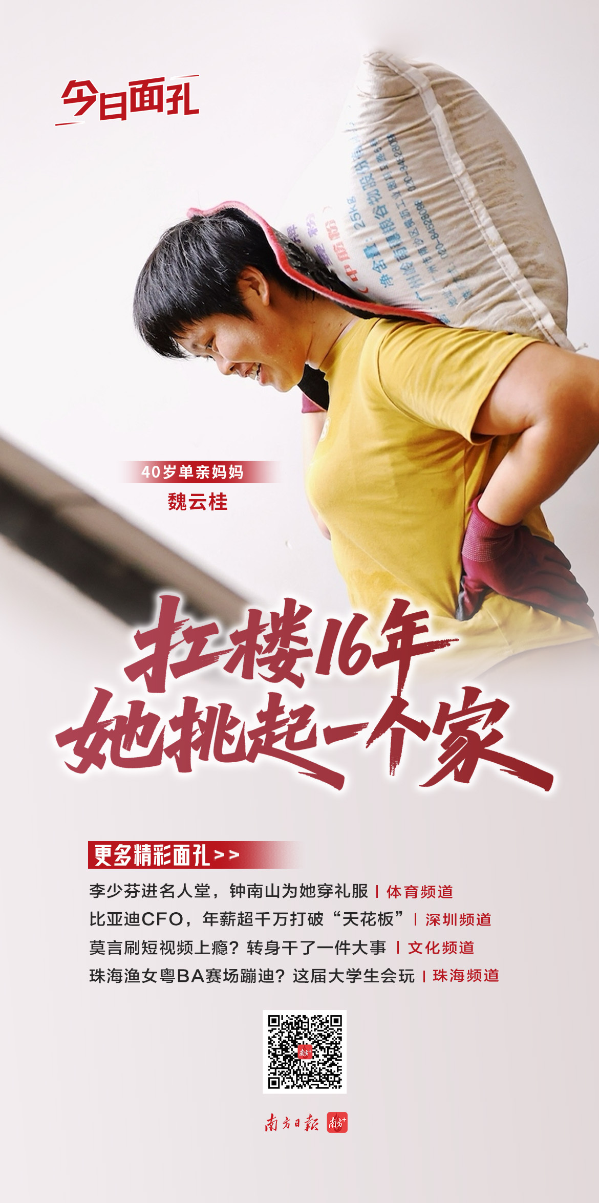 40岁的湖南单亲妈妈魏云桂,扛楼16年,用肩膀挑起了一个家。