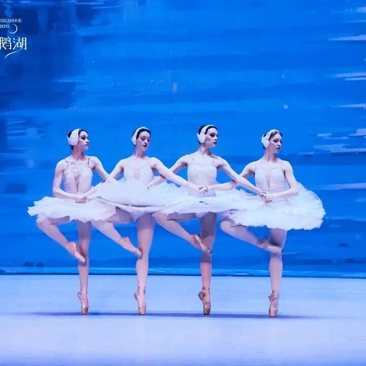 芭蕾舞剧《天鹅湖》中有多种经典的舞蹈段落,如“四小天鹅舞”,动作整齐划一,活泼可爱,充满童趣;“三大天鹅舞”则展现出了成熟、优雅的气质;“天鹅大群舞”场面壮观,舞者们通过队形的变换和动作的协调,营造出了一种宏大而优美的视觉效果。“白天鹅双人舞”则展现优美、轻盈、舒缓,通过单脚站立、旋转等动作展现出白天鹅的优雅和纯洁。