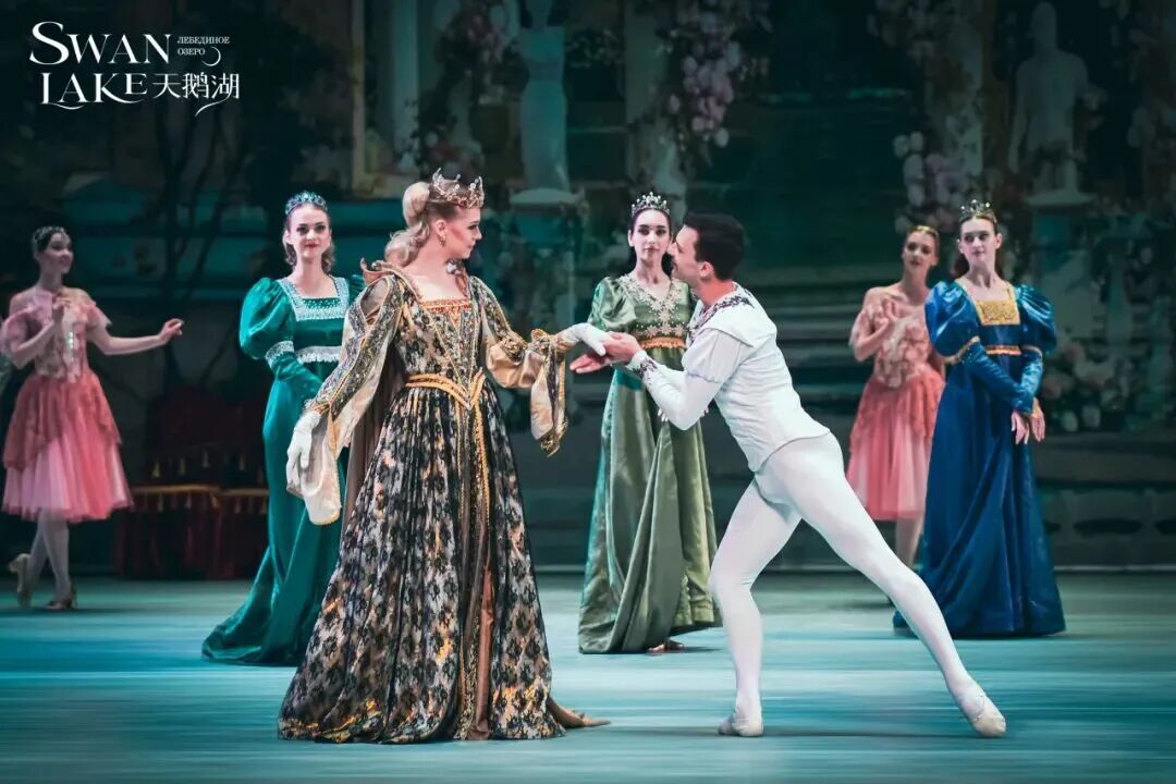 俄罗斯莫斯科芭蕾舞团,在舞台布景上创造了美轮美奂的场景,第一幕中富丽堂皇的金色宫廷,第二幕里童话般梦幻的森林,以及第三幕中晶莹的湖蓝月景,无不彰显极高的审美水平,让观众可以感受神秘、古典又浪漫的艺术氛围。