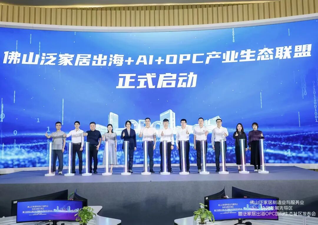 发布会现场,“泛家居出海AI创新港”正式揭牌,首批OPC项目团队携手签约进驻,佛山泛家居出海+AI+OPC产业生态联盟同步启动。作为联盟主力军、OPC孵化平台,敬城国际总裁庞敬烽介绍,公司将携手当地政府,共建4.2万平方米泛家居出海AI创新港,打造集商业展示、办公、培训、交流、生活于一体的现代化创业空间,让OPC能在禅城安心扎根、轻装上阵、快速成长。