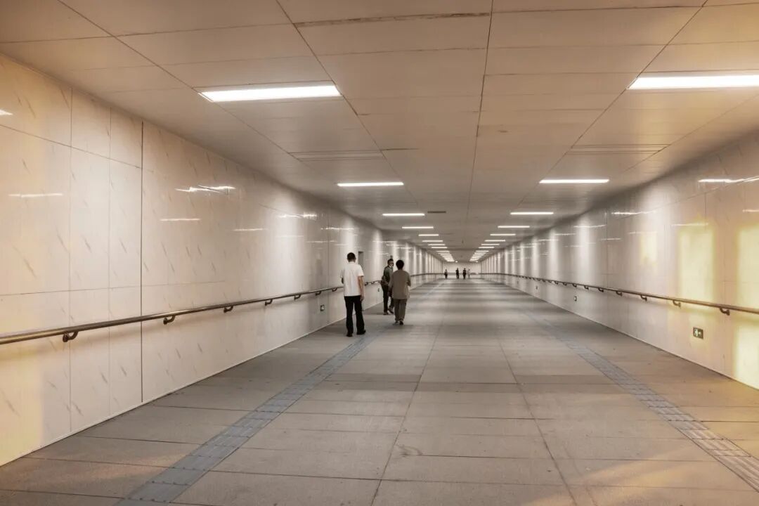 工业大道-东鄱路涉铁慢行通道位于佛山市禅城区工业大道与东鄱路交叉位置,主通道全长110.5米,采用“工”字型科学设计。通道主出入口分设于铁路东北侧与西南侧,整体下穿既有河涌及广茂铁路,是完善禅城区交通路网、实现惠民利市的重大民生基础设施。