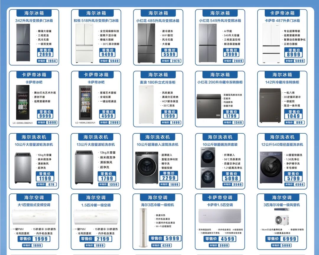 此次“十五载智造乐平,感恩全城钜惠”工厂开放日活动,用户可同时享受国家补贴和企业补贴。据海尔佛山三水园区市场部负责人介绍,活动期间,全品类家电同步让利,覆盖冰箱、洗衣机、冷柜、空调、热水器、厨电等多个品类,近百款产品推出专属优惠。整体来看,全品类家电平均优惠幅度超30%,部分爆款机型直降千元,最高降幅超过50%。以市场价9999元的卡萨帝冰吧为例,市民享受国家补贴和企业补贴后,仅需5999元即可入手。