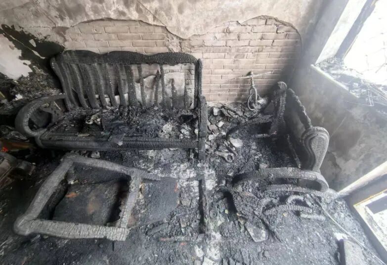 过火沙发烧损严重。