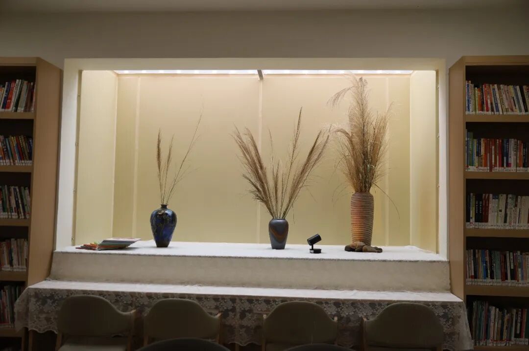 书架旁、角落里,点缀着小巧精致的花艺摆件,绿植与鲜花相映成趣。在这里读书,仿佛置身“小森林”,连翻书的动作都更轻快了~