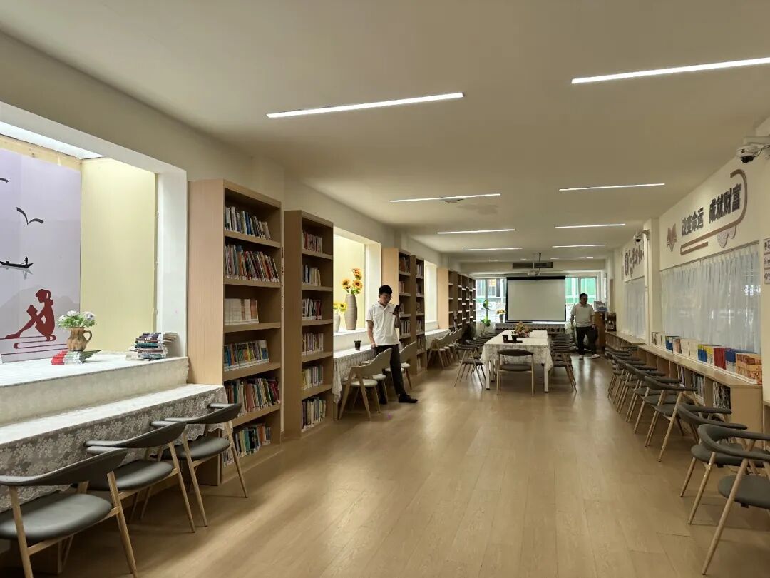 原木色书架整齐排列,文学经典、历史人文、科技前沿、艺术美学……超多品类书籍覆盖职工多元阅读需求。搭配柔软的沙发、宽敞的桌椅,阳光透过窗户洒在书页上,午休时、下班后,来这里泡一杯茶,翻两页书,瞬间治愈“班味”!
