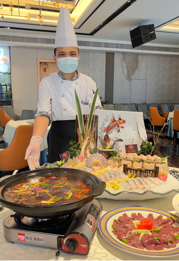 人人臻品盛宴:顺德鱼茸羹、香芒片皮鸡、龙江乌酱啫鳝柳、龙江乌酱豉汁水海鲜姿造