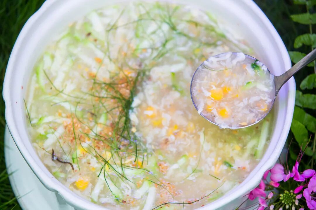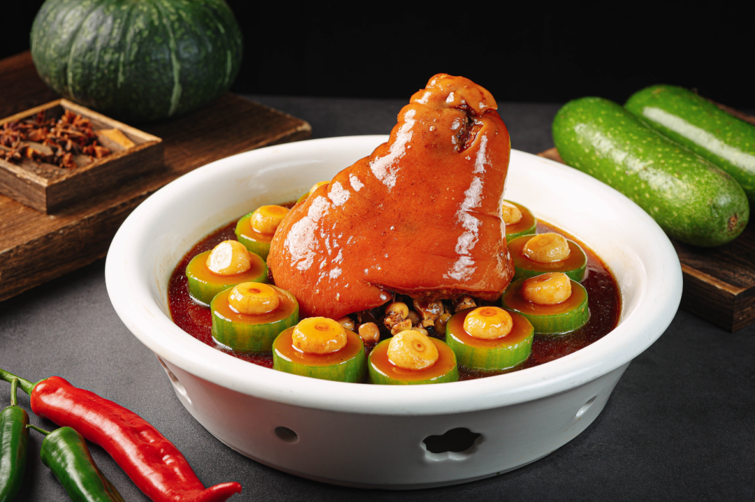 朝会:金汤海鲜泡饭、松子鱼、椒麻鸡、苦瓜刺身、一品东坡肉、黑蒜炖土猪汤