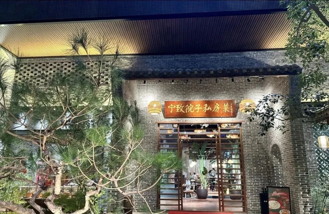 宁致院子私房菜:罗氏虾、古法彭公鹅、顺德拆鱼蓉羹、牛胸油啫草菇、七彩手撕鸡
