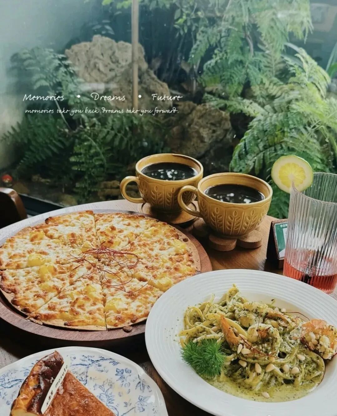 Musuli木束里:黑松露培根蘑菇披萨、罗勒青酱松子意面、开心果巴斯克、香草拿铁