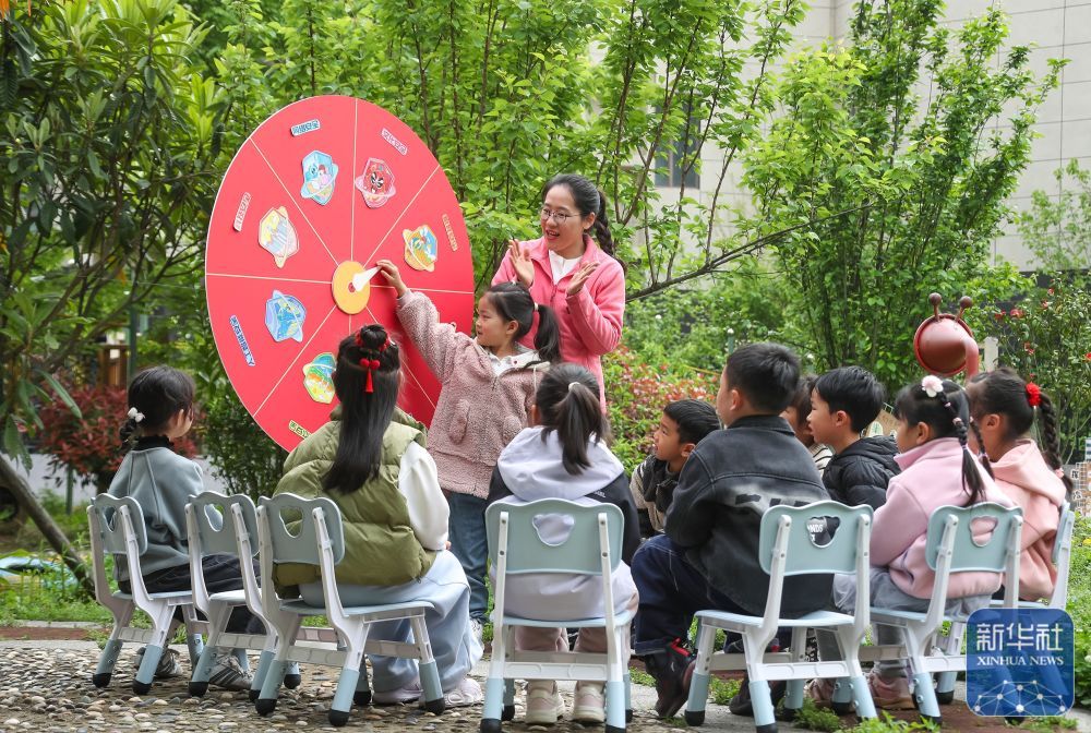 4月14日,在江苏省句容市北部新城幼儿园,小朋友通过互动游戏了解国家安全相关知识。新华社发(钟学满摄)