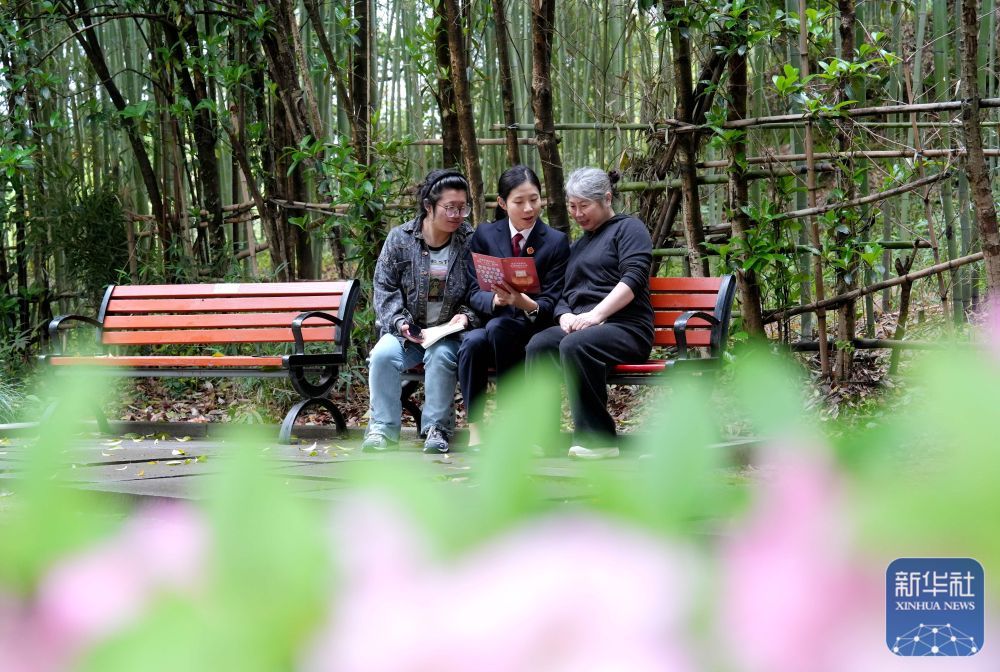 4月14日,浙江省德清县人民检察院检察官在法治文化公园给群众讲解国家安全知识。新华社发(谢尚国摄)