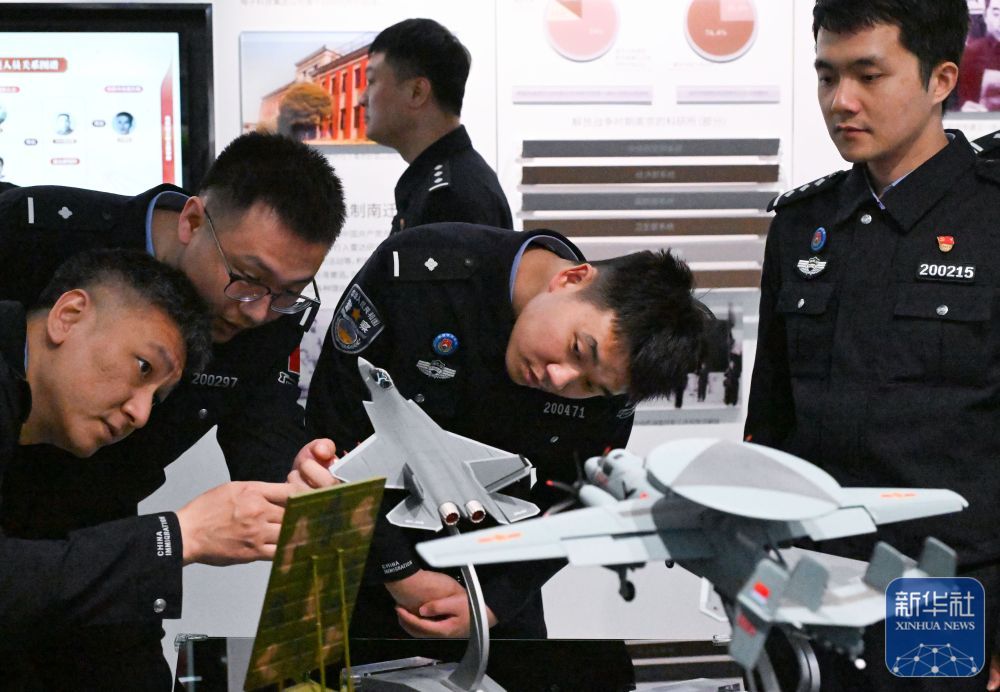 4月14日,南京出入境边防检查站的民警在江苏省南京市全国国家安全教育基地参观。新华社发(杨素平摄)