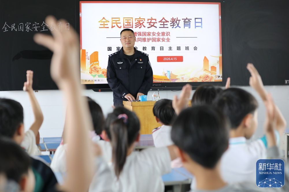 4月14日,在浙江省嘉兴市三水湾小学,学生们在“全民国家安全教育日”主题课上学习国家安全知识。新华社发(金鹏摄)