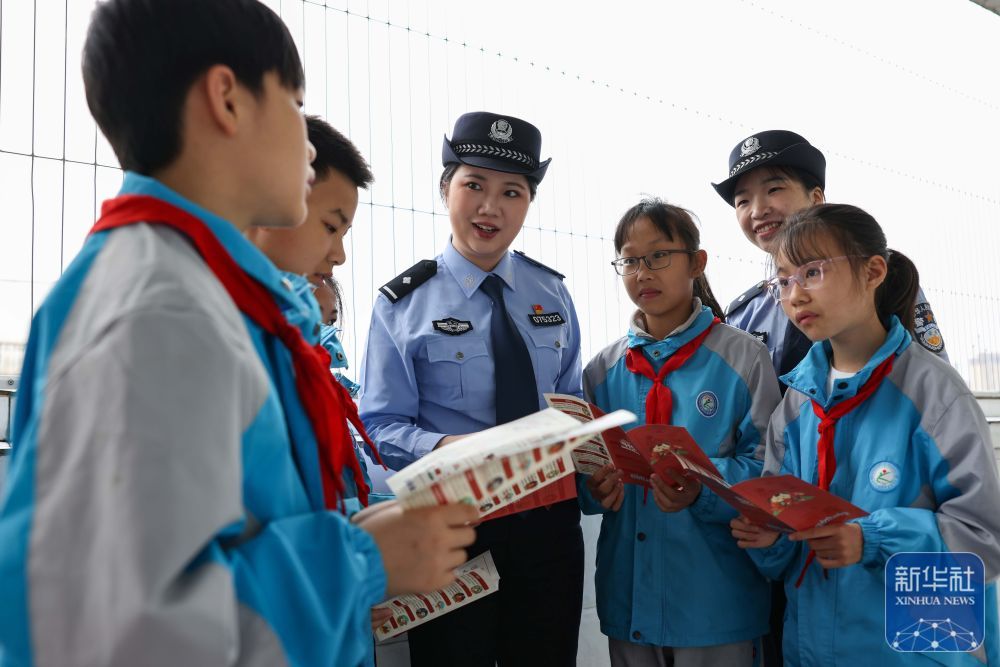 4月14日,在贵州省开阳县第一小学,民警给学生讲解国家安全知识。新华社发(袁福洪摄)