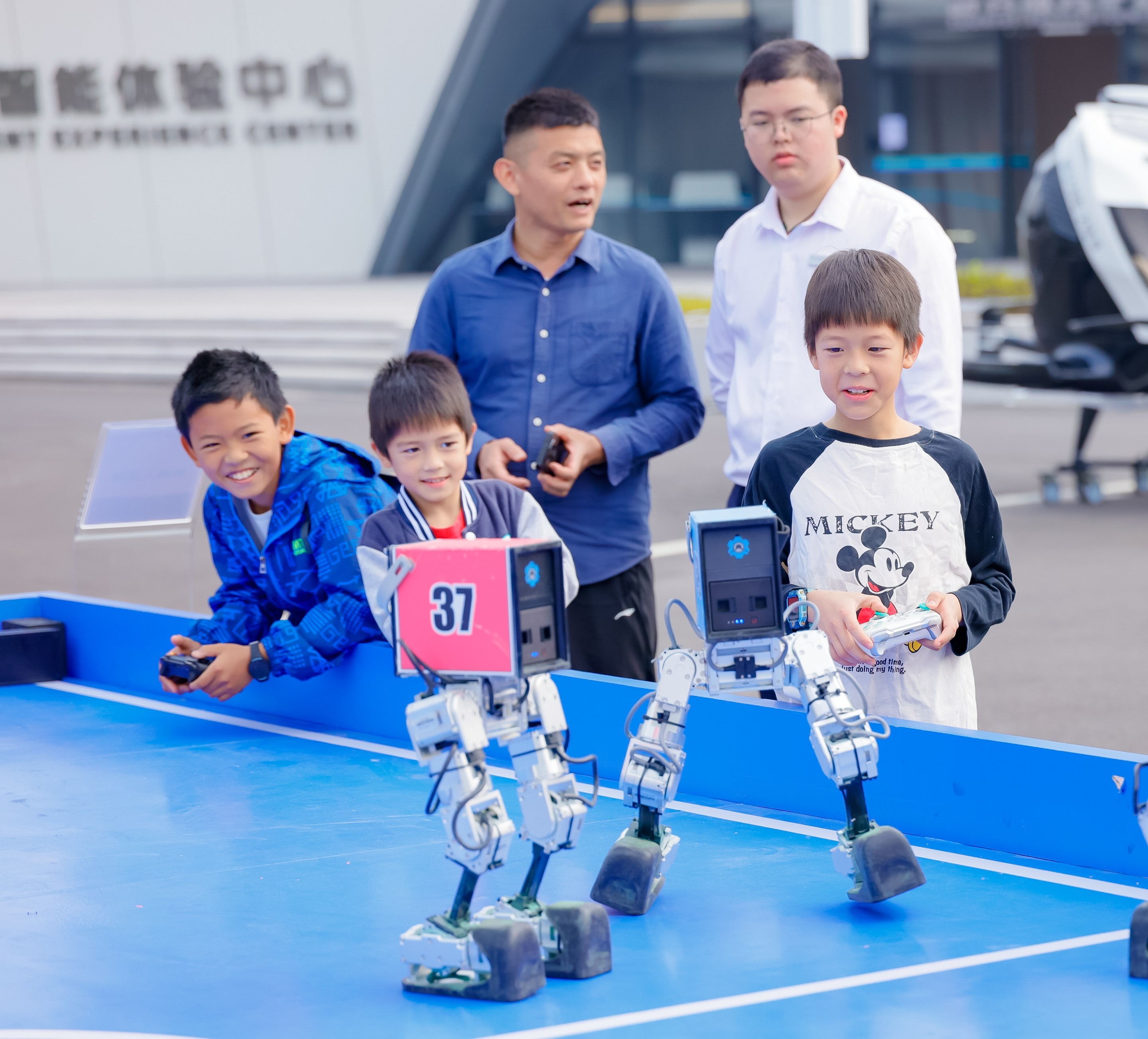 观看机器人足球赛、仿生四足机器狗灵巧互动;