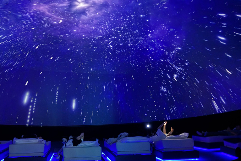 在亚洲最大的LED曲面天幕下看海浪星河,宛如置身“空中鱼缸”;