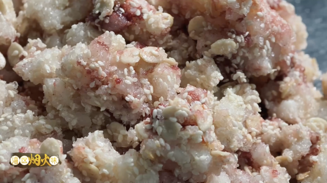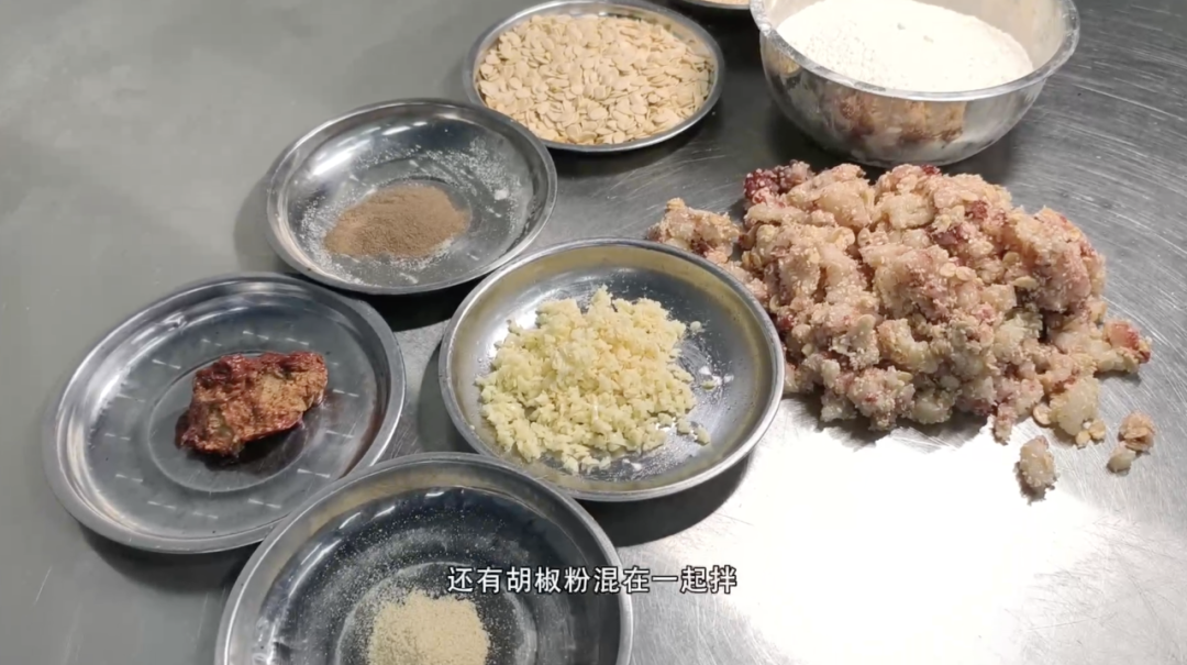 整体原材料还是保持传统,馅料有冰肉、蒜粒、芝麻、南乳等拆制,但比例由传统的4:6变为2:8,相比来说油脂更少,负担更小。