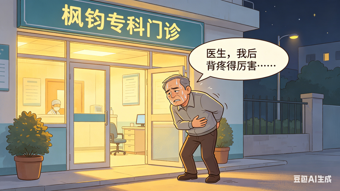 4月6日晚上,56岁的徐先生捂着背,艰难地走进市五医院医疗联合体单位枫钧专科门诊。他满头大汗,脸色发白,神色极度不适,一看就不对劲。
