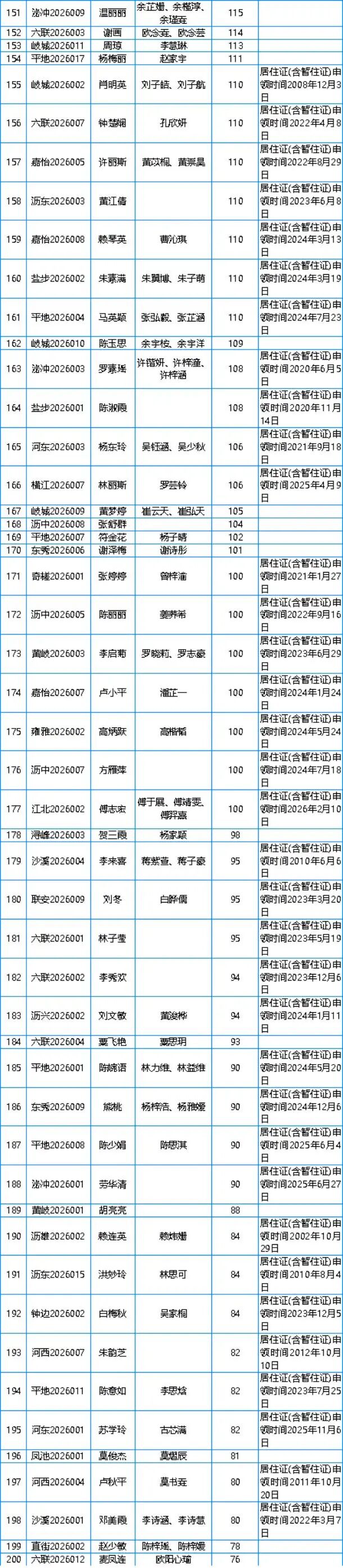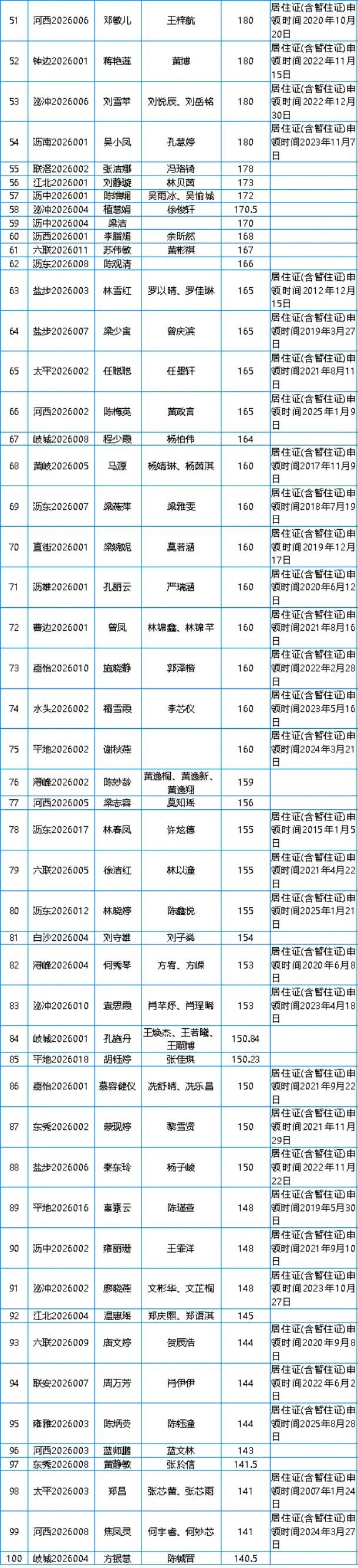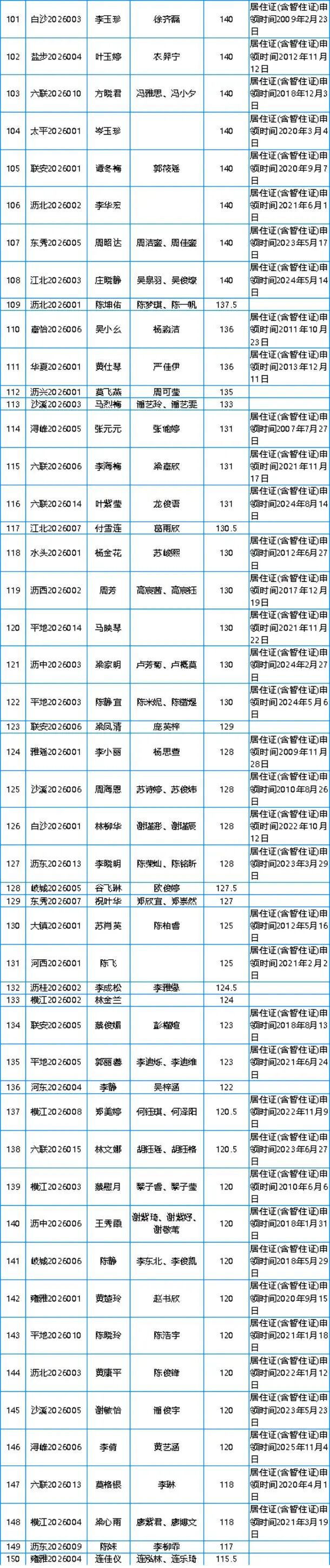 附件:2026年第一季度南海区大沥镇新市民积分入户分数及名单