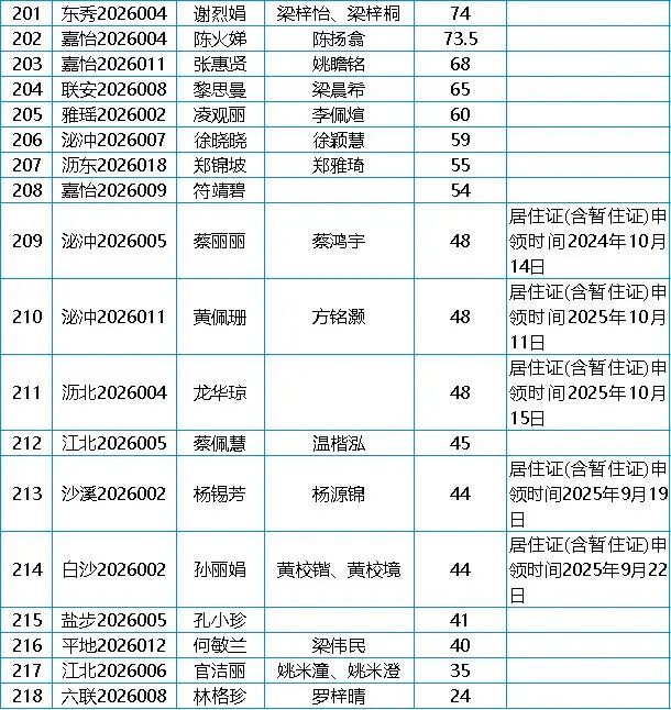 入户分数及名单公示