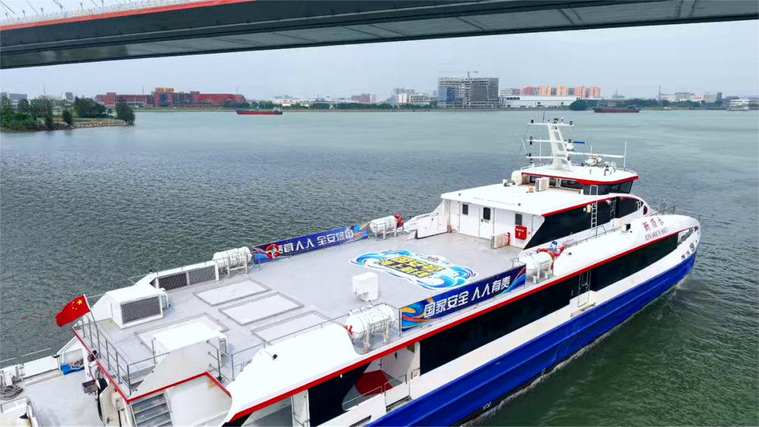 伴随着一声悠长的汽笛声,佛山“国安号”海上客轮缓缓驶离码头,鸣笛启航!这艘客轮巧妙融合了岭南特色元素与国安宣传主题,未来将往返于顺德与香港之间,化身为“海上流动的国安课堂”。在碧波荡漾中向广大旅客普及国家安全知识,架起一座佛港两地的“国安连心桥”,让每一位搭乘“国安号”的旅客,在旅途中都能感受到国家安全就在身边。