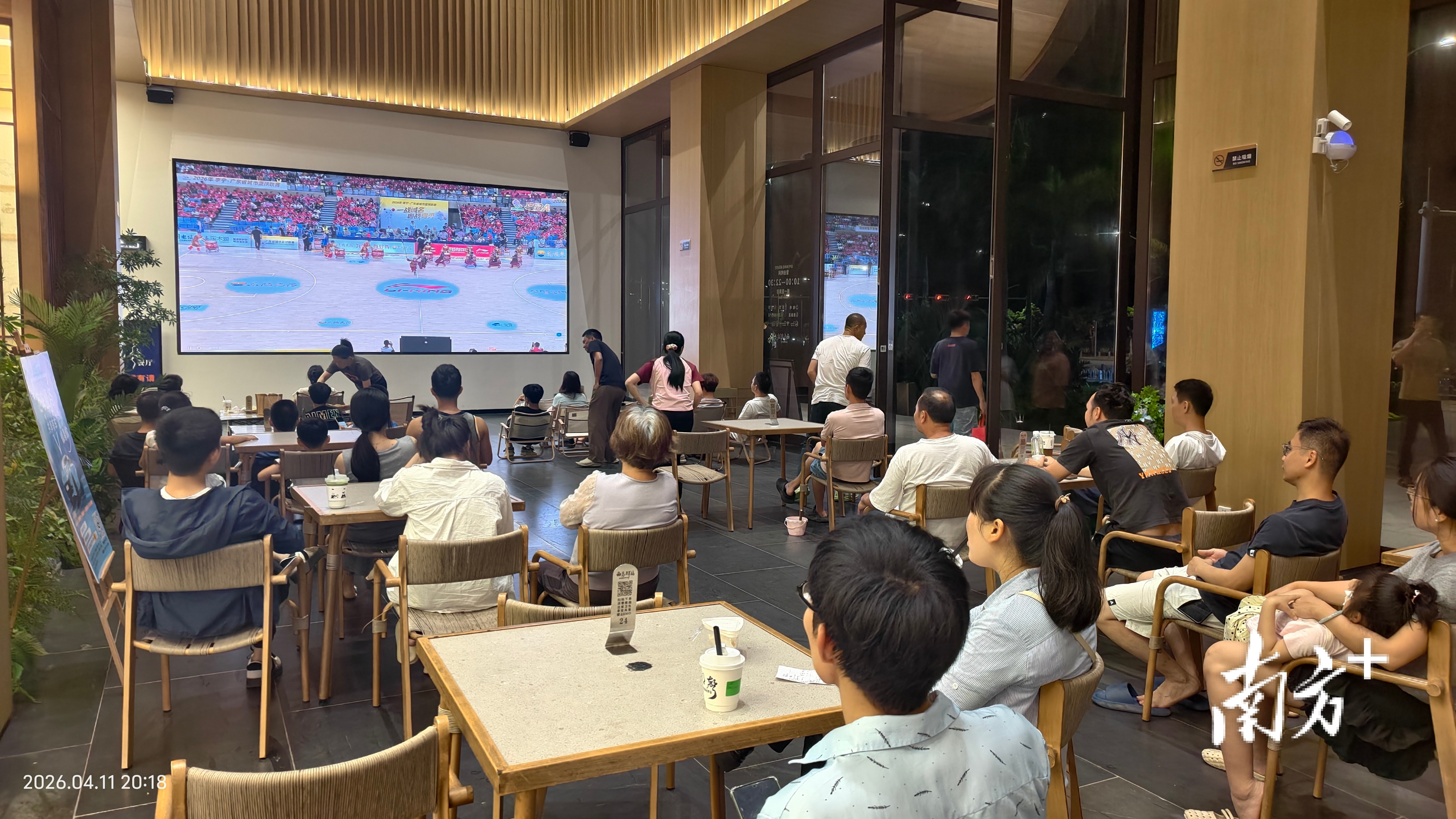 上周六,云浮市民在当地商场内观看粤BA云浮主场对阵湛江队比赛。云浮融媒供图