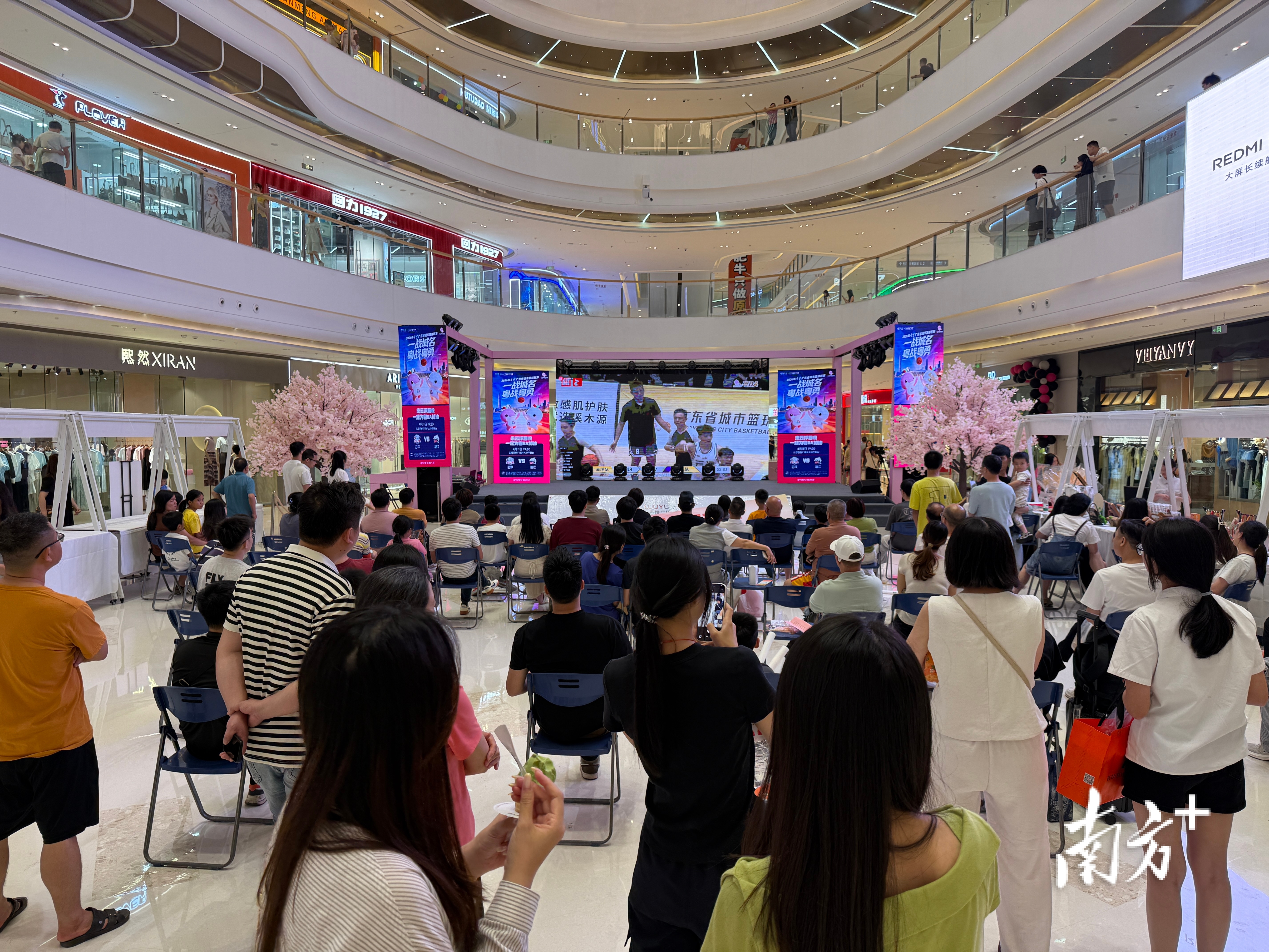 粤BA期间,清远顺盈时代广场中庭直播粤BA赛事,吸引群众关注、消费。清远市商务局供图