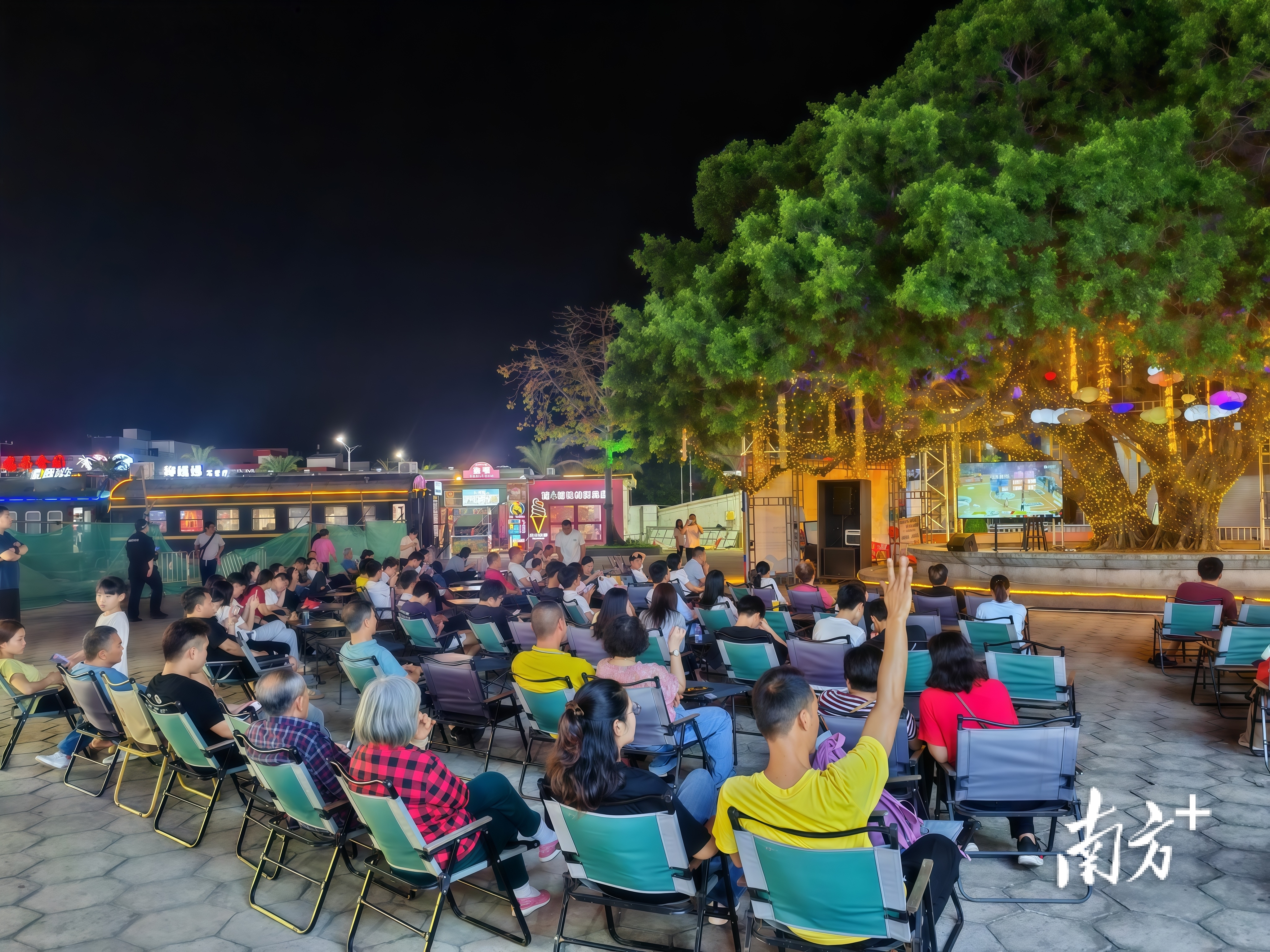粤BA赛事的热度突破赛场边界,席卷城乡各地。各地商场、广场、集市纷纷设立直播观赛点,有效拉动餐饮消费、带旺当地夜经济。