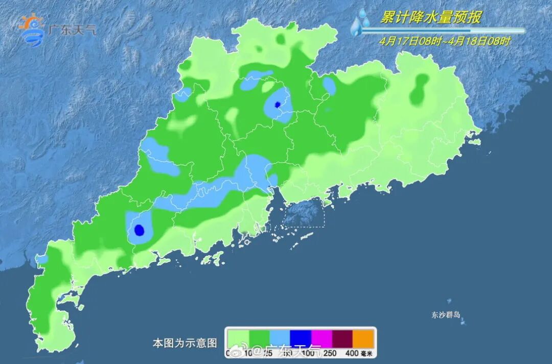 @广东天气预计,4月16-17日,受西风槽和弱冷空气影响,肇庆、韶关和清远有大雨局部(大)暴雨,河源北部、粤西大部和珠三角其余市县有中到大雨局部暴雨,上述地区雷雨时部分市县伴有小冰雹和8-9级局地10级的短时大风。4月18-19日,降水明显减弱,全省大部雷阵雨转多云。强对流频发季节,近期谨防局地强对流引发的安全风险。
