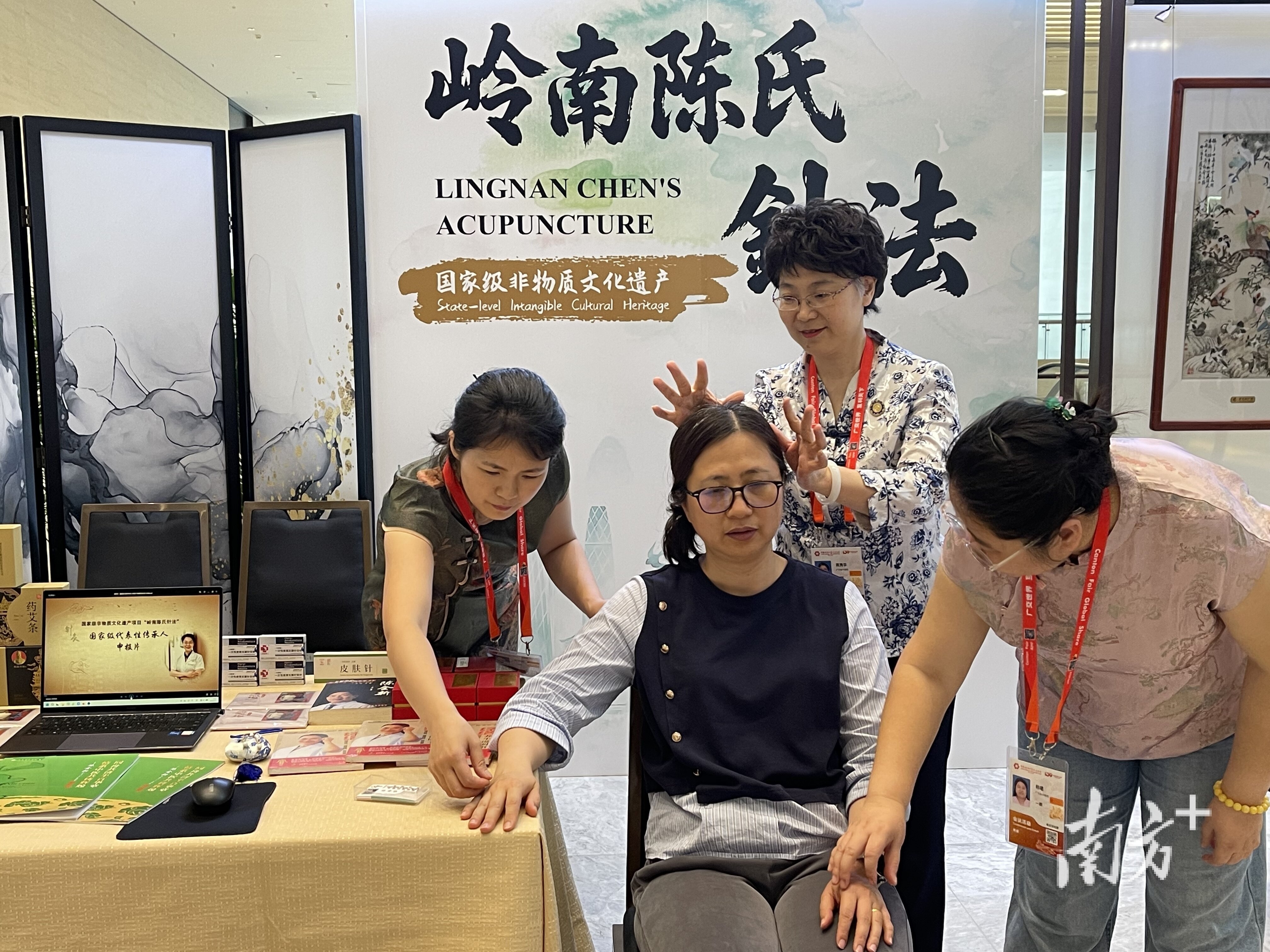 目前团队已累计接待境内外客商百余人次,精湛的针法、专业的服务获得了全球参展嘉宾好评,成为本届广交会上中医药文化传播的亮眼名片。