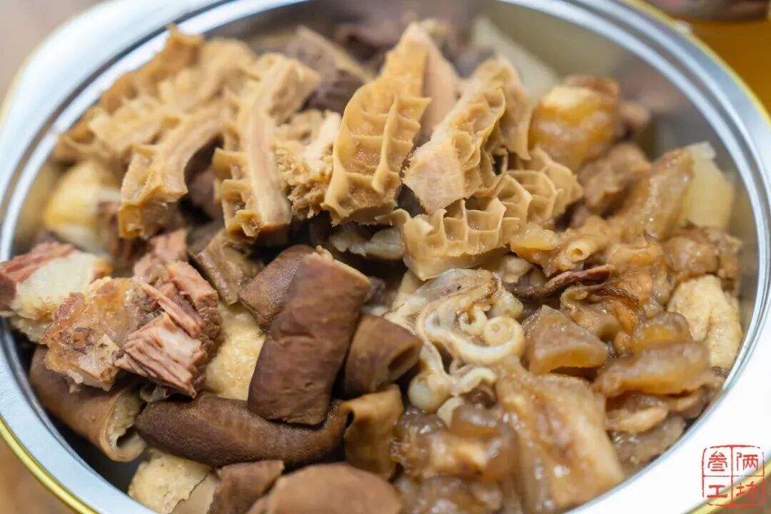 店里的牛杂种类丰富,有牛筋、牛肠、牛肺等9种常见食材。这些牛杂经过长时间卤煮,无需额外酱料就十分入味。