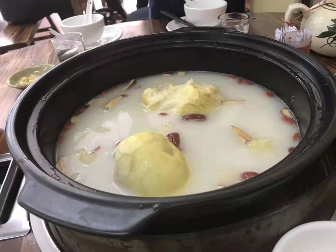 喝上一口汤,浓郁的榴莲味率先冲击味蕾,随后是鸡肉的醇厚鲜香,层次丰富。鸡肉吸收了榴莲的香甜,吃起来鲜嫩多汁,丝毫没有油腻感。