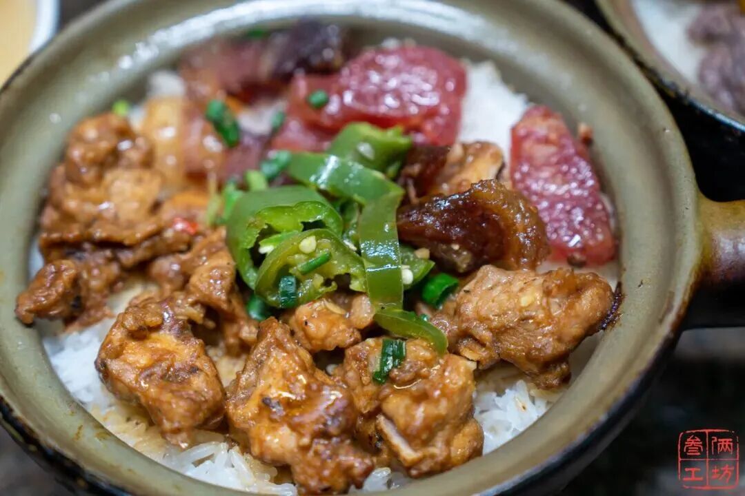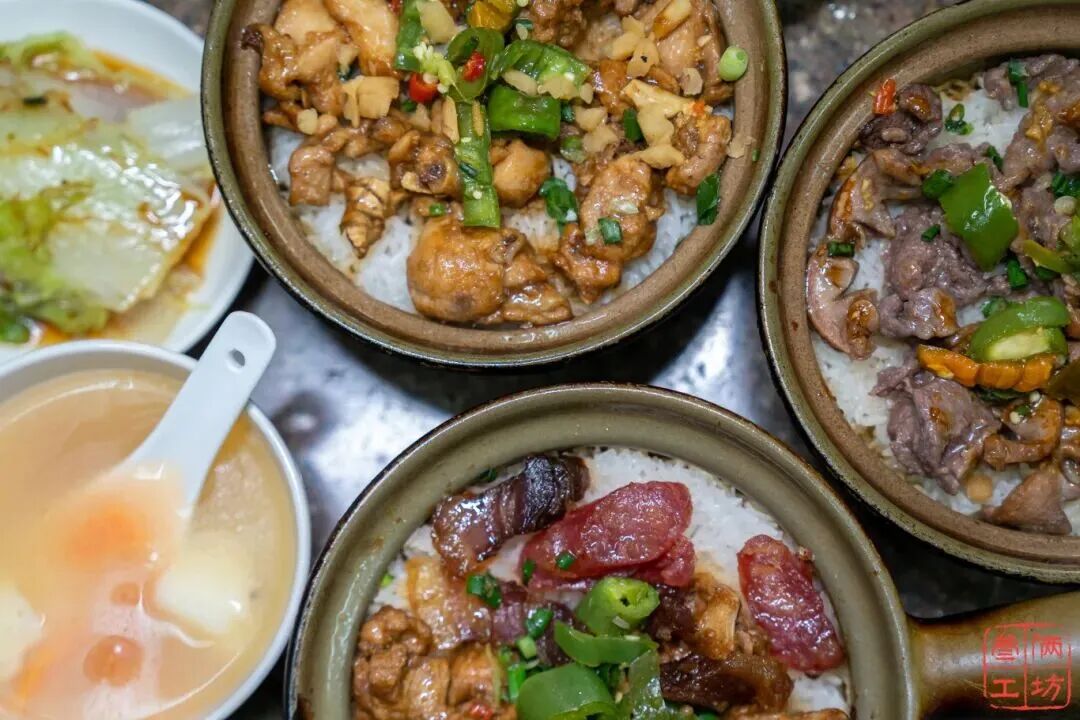“煲仔”在粤语里是小砂锅的意思,砂锅内壁厚、保温好,能最大程度锁住食材的原汁原味 。店里的煲仔饭制作讲究,生米下锅,搭配丰富配料,先以大火烧米,再用小火焖肉。